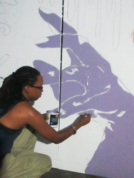 Yutavia: This ACE mural addresses diabetes awareness by using hands as a symbol. The three hands symbolize Awareness, Compassion and Education. The contorted fingers-which seem ‘intimidating ’, represent the pain of taking daily needles. The work also shows hope for more resources to provide information and support the families with members who are diagnosed with diabetes.