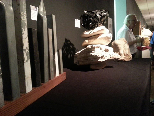 She said there is a limestone rock carving by Allan P Wallace, an industrial car part sculpture made by June Collie, a functional wine-cork lamp by Chris Symonette, installation works by her and Charlthorn Strachan, a driftwood sculpture from Tiffany Williams and a driftwood collage by Leanne Russell.